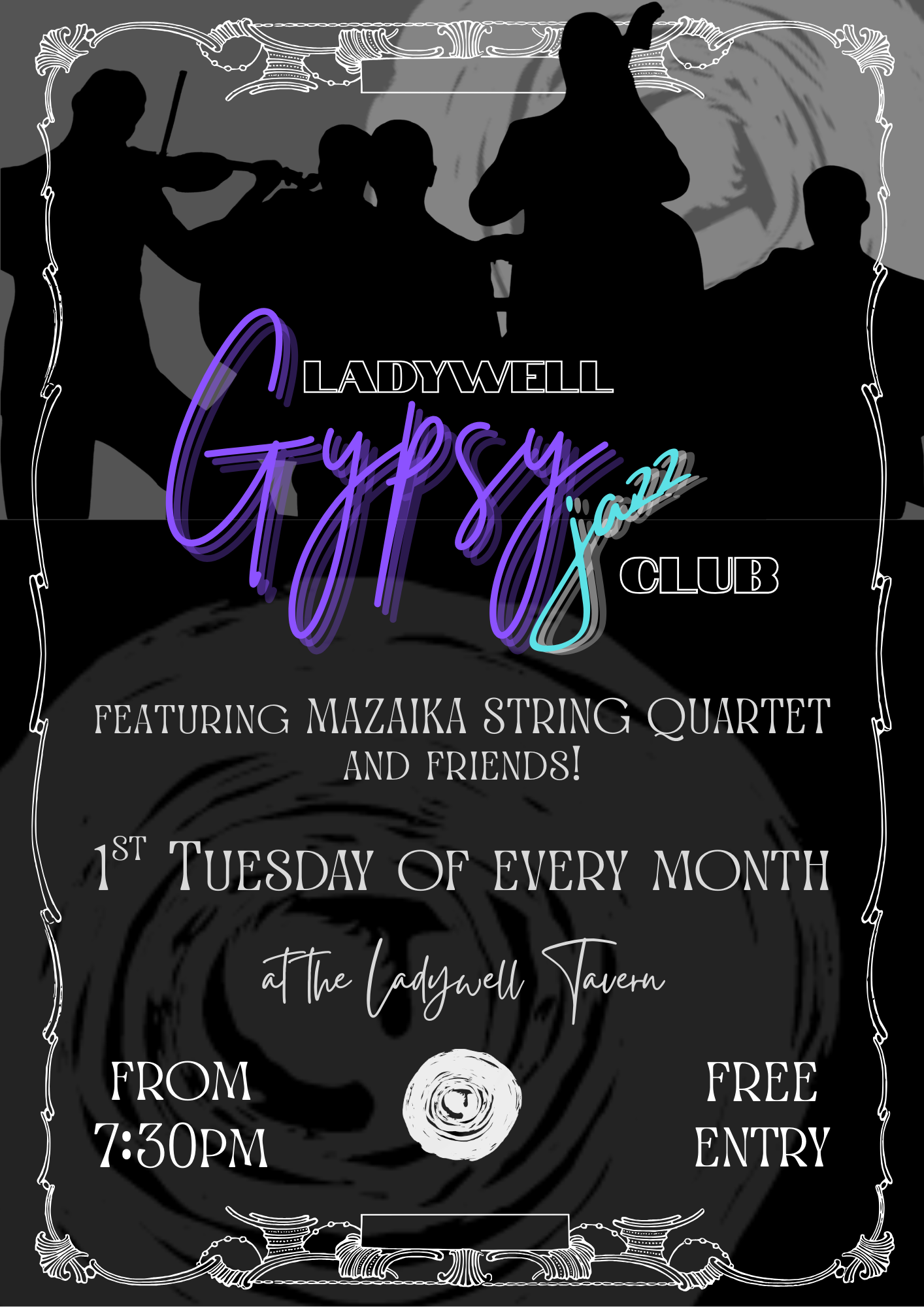 The Ladywell Tavern presents Gypsy Jazz on the first Tuesday of every month, hosted by the enigmatic Mazaika Swing band. Playing traditional Gypsy jazz music from 8pm, you are invited to dance!