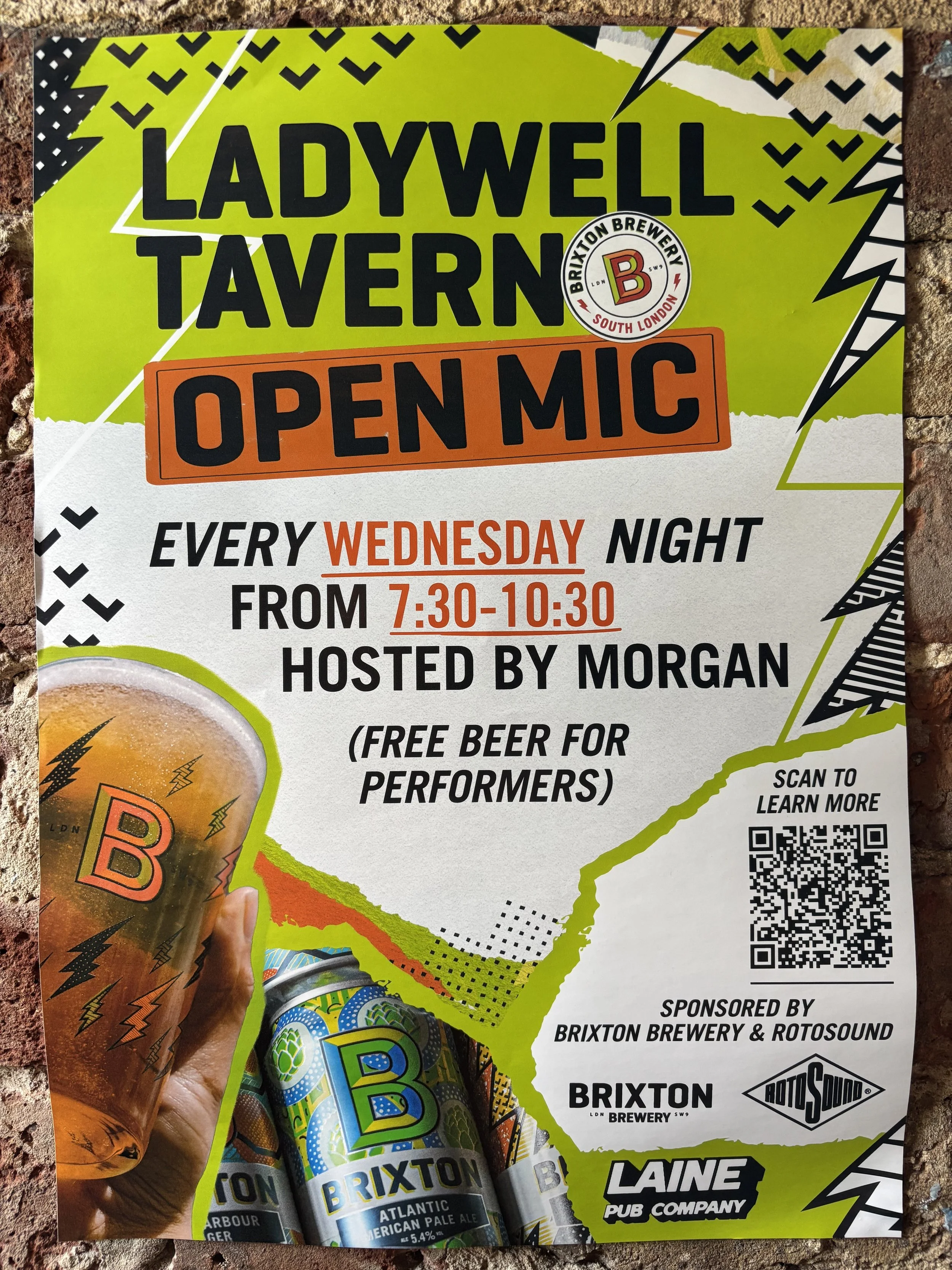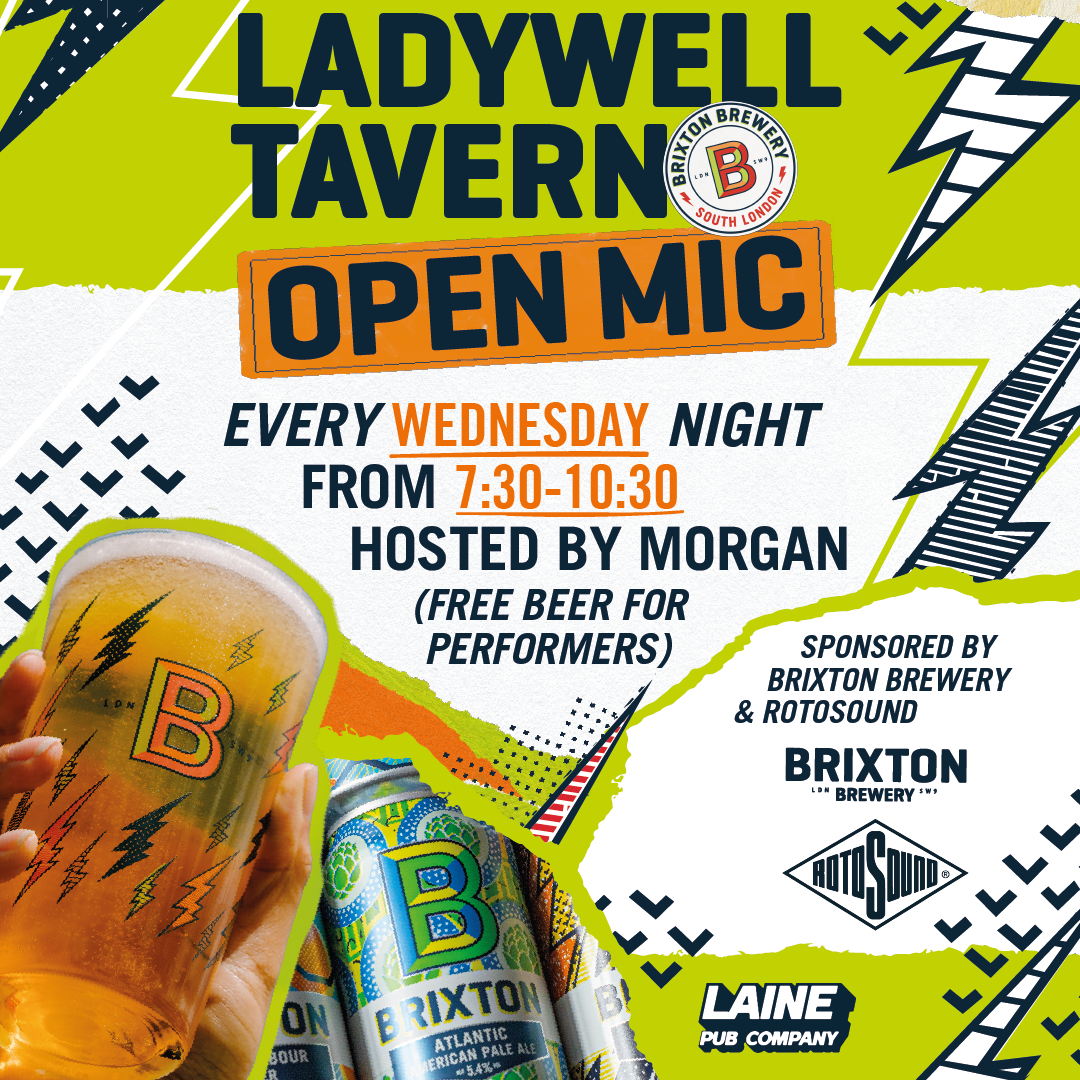 Every Wednesday from 7:30pm come down and sign up to our open mic night! Hosted by Morgan this is a community hub of musicians. Plus free Brixton beers for performers!